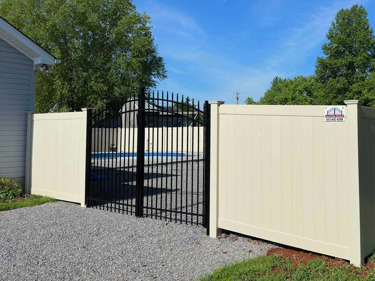 Residential properties often use swing gates for walkways and driveways. Vinyl, wood, chain link, and aluminum are the most popular materials. These gates are designed for frequent use and reliable closure. You'll see this style used throughout Middle Tennessee neighborhoods.
